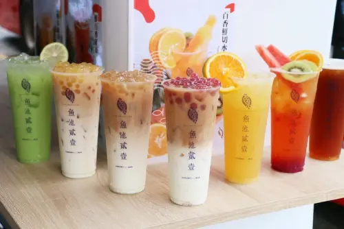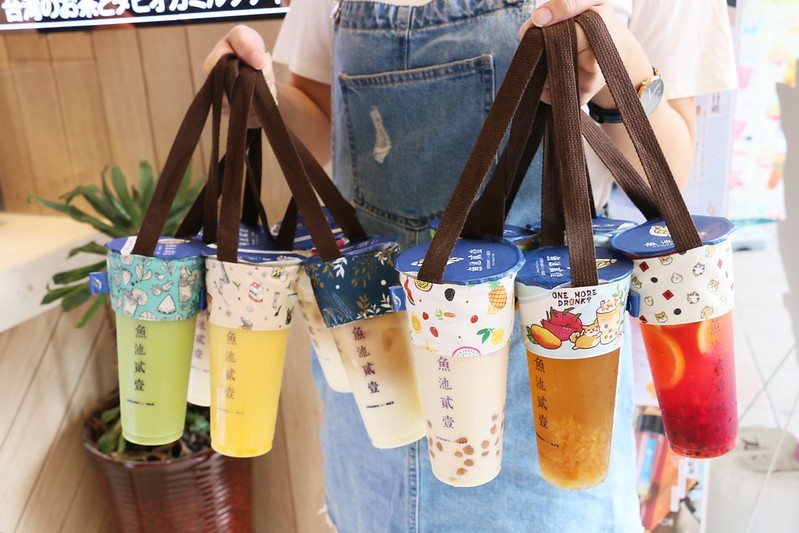 士林夜市飲料『魚池貳壹-台北士林總店』大推彩色珍珠奶茶和超多料水果茶,集點送環保飲料提袋,菜單價位,優惠活動(捷運劍潭站)