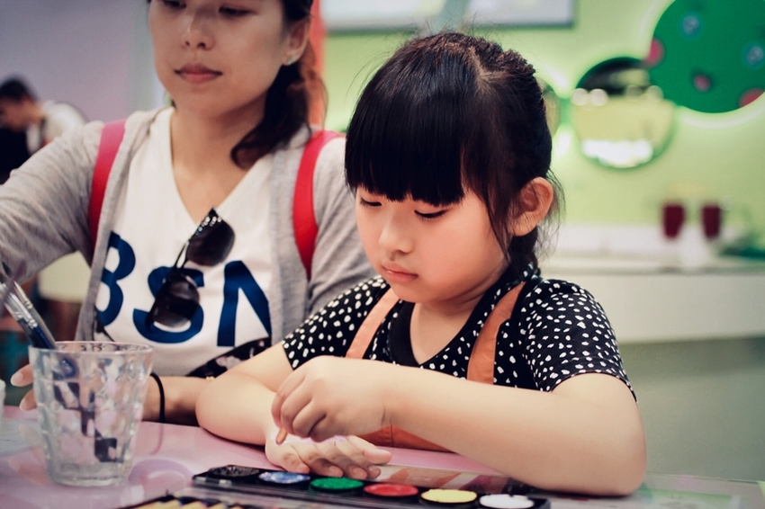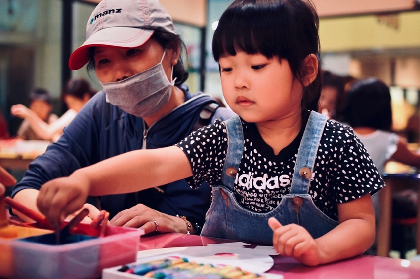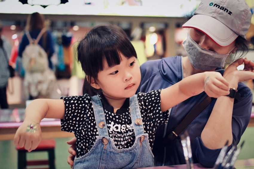 Yumi姐姐就自己拿了蠟筆隨意地在手上畫畫;而檸檬妹妹則是奶奶幫她手繪,結束後可以到洗手台用肥皂做清洗,不用擔心不好洗,三兩下就可輕鬆清洗乾淨。