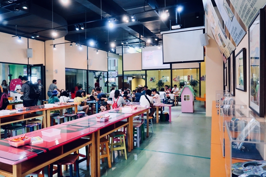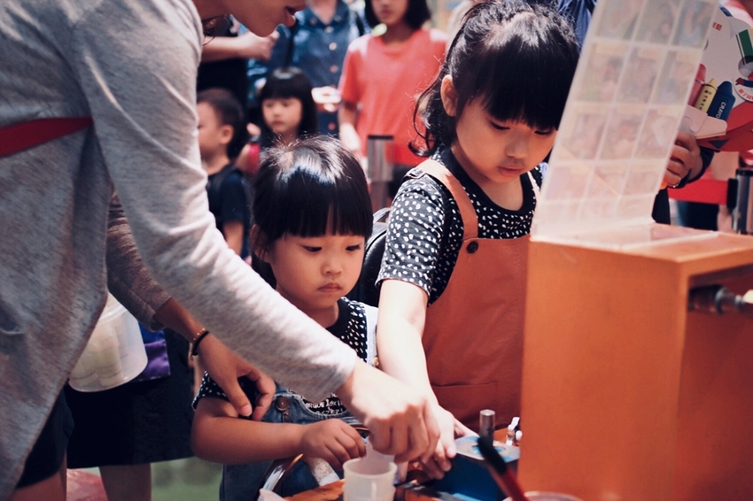 入館時間一到,大家統一到入口1的玩色工坊前排隊依票進入教室,每項體驗都會依門票領取材料、工具等,所以門票千萬不可弄丟。