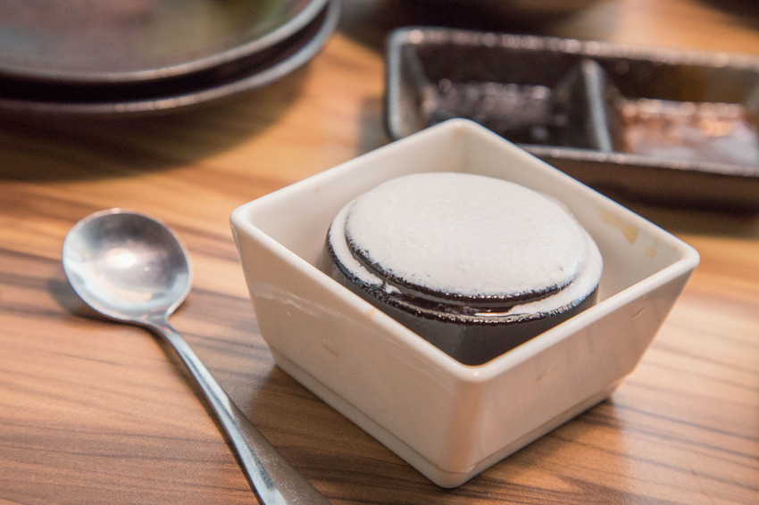 烤干貝時很特別,服務生先將雞湯道入干貝的小皿中再拿去烤,有點像干貝雞湯的概念