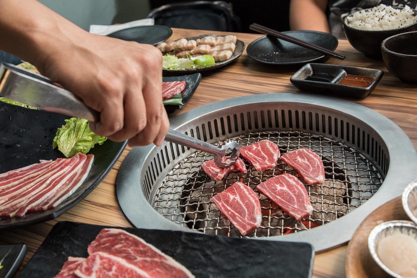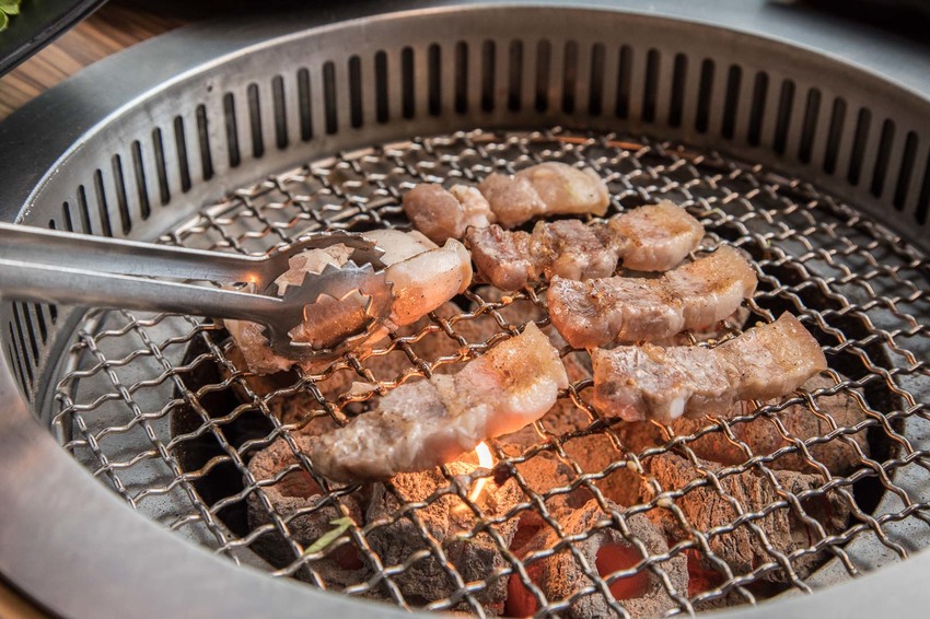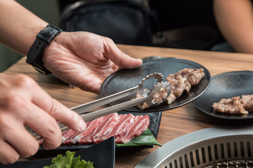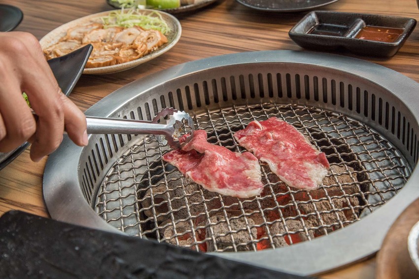 開烤囉,和東燒肉屋是採用的是炭火來燒烤,所以還會比一般電爐或是瓦斯爐多一股炭香味,另外烤爐是下崁式的,周邊有旋風式抽風來吸取油煙,所以吃完燒肉身上也不會有燒烤異味