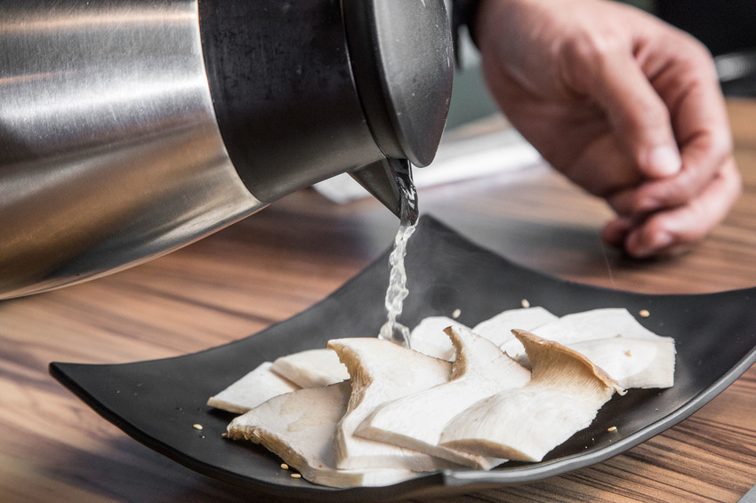 烤之前也是淋上雞湯,在上爐烤時,因為表面有雞湯的浸潤,所以烤起來杏鮑菇格外多汁軟嫩,好吃!