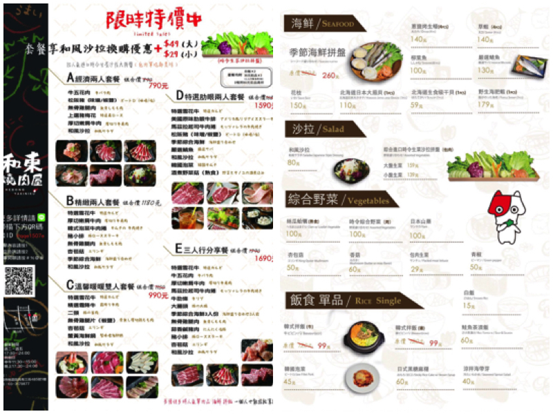 和東燒肉屋餐點選擇相當多元,不管是單點、套餐任君選擇,重點是這裡價位並不高,份量也頗大,而且肉類的品質相當高級,同等級的肉類在台北可能要貴上許多,所以要吃高品質的燒肉,來和東燒肉屋就對了!