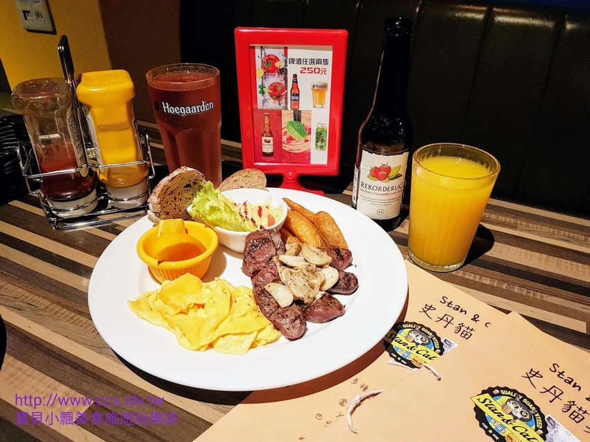 台北東區人氣漢堡店現在在西門町也可以吃的到!!嚴選新鮮食材及有機雞蛋,現點現做維持最佳口感除了多種漢堡口味必吃外,義大利麵、三明治、牛排、雞排等豐富料理或是來份營養可口的早午餐也是不錯首選~當日壽星出示證件,還可以參加轉轉樂有機會抽到驚喜折扣喔!!!!位於東區的名店史丹貓美式餐廳道地的美味深受大家喜愛~現在你不用跑到東區~在西門町就可以吃到喔!!!鄰近國賓大戲院西門町熱鬧商圈,交通十分方便附近還有峨嵋停車場可以停車~~Stan&Cat史丹貓美式餐廳(西門店)門口招牌大大寫上[來台必吃台北東區人氣名店]似乎對於自家產品非常具有信心~既然如此~怎麼能錯過美食嘗鮮機會呢~消費有好康~好康先報你知~1.持當日電影票根並打卡並點主餐~可享飲料(100元內)免費招待!!2.當日壽星出示證件可參加轉轉樂,有機會抽到驚喜折扣3.平日點主餐並上傳FB打卡並在粉絲專業按讚,可獲得冰淇淋薯條4.出示@LINE集點卡,點購一款主餐可獲得一點,集滿十點可兌換歡樂派對組合5.付款可使用街口支付付款,可累積消費金額5%街口幣回饋西門店B1共有60個座位提供顧客使用並還有提供隱密小包廂提供多人用餐使用!!店內十足的美式氣息,牆壁有許多美式為背景的畫作及擺飾~用餐環境非常舒適,多人聚餐慶生等等...都非常合適喔!!壽星試手氣~轉出好運氣遊戲辦法請洽服務人員史丹貓提供多樣化的美式餐點,其中多種口味的漢堡更是主打的特色不只吃單一口味漢堡,還可以為您特製化加料系列,想在漢堡多加甚麼任君挑選~除此之外,還提供創意料理早午餐、義大利麵、三明治及單點美式小點心還有豐富特調飲料(其中還有無限量續杯的飲料喔)及精釀啤酒可以選擇豐富的精選飲料及啤酒系列瑞典雷柯德水果啤酒香甜可口的啤酒~清爽、開胃的水果酒含氣泡好入口,酒精濃度4.5%不含人工甜味劑、香料及色素,是一款非常好喝的水果酒喔!!啤酒任選兩隻特價250元(兩隻唯一組如選擇水果精釀,只可搭一隻)(未成年請勿飲酒,喝酒不開車開車不喝酒)大滿足首選~天啊好大牛肉堡文如其名~真的非常巨大的牛肉漢堡內含三片5.5盎司的火烤牛肉排(漢堡排利用火烤方式讓鮮嫩肉排增添炭烤香氣)美式起司片三片、培根兩片及淋上蜂蜜芥末醬及新鮮蔬菜(可另