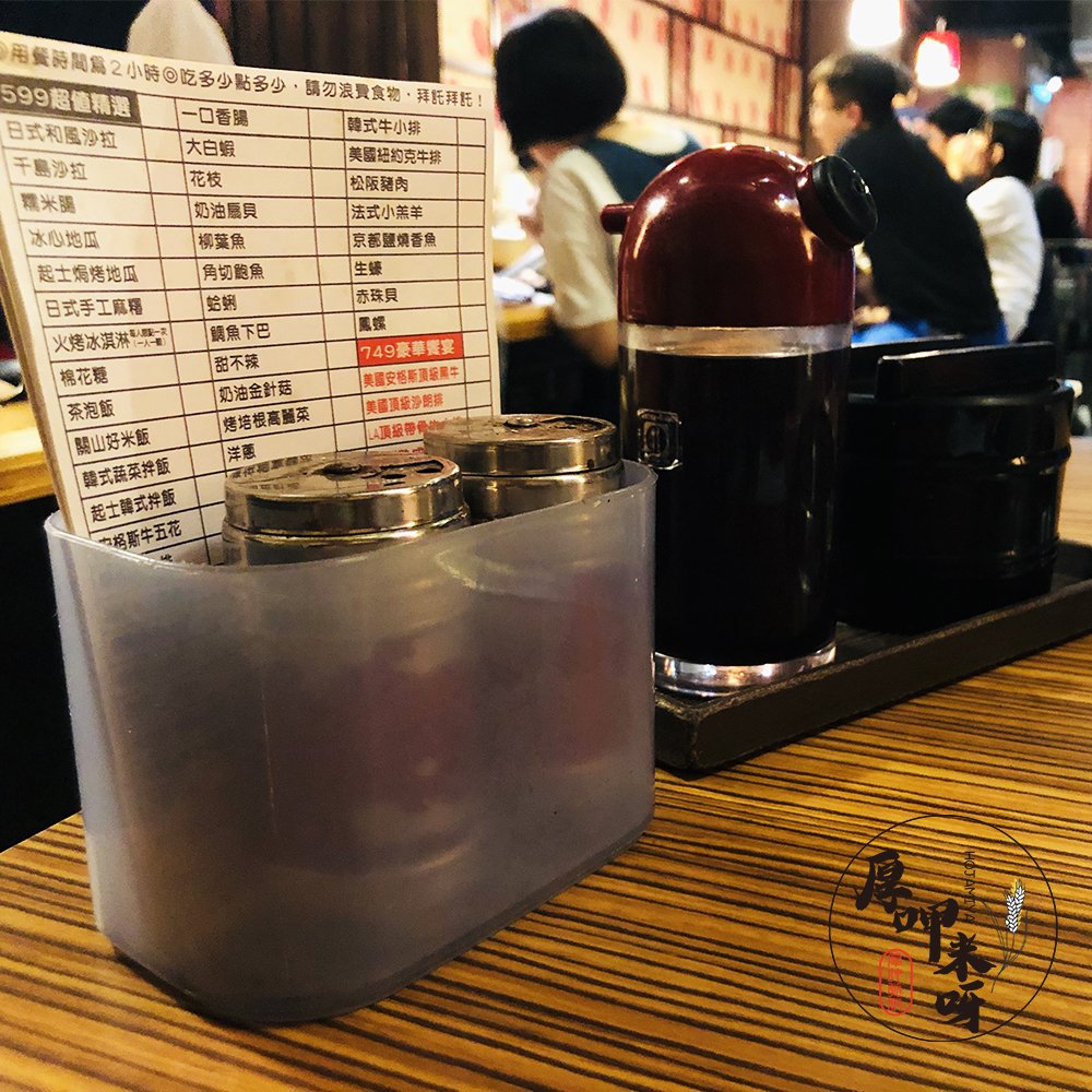久天日式燒烤提供包含玫瑰鹽等四種調味讓客人自行調味使用。