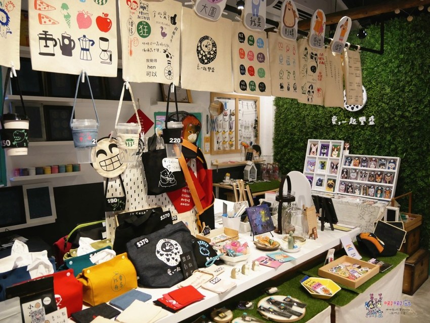 愛,一起豐盛的另一邊則是賣手作包包、小物的,吃完點心也可以來逛逛喔!可以自己畫包包圖案的網版印刷。