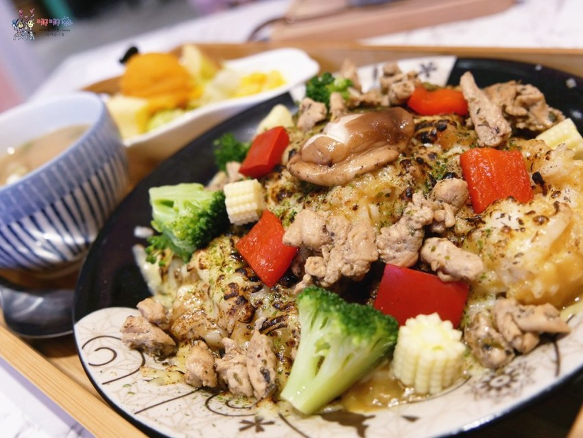 而且上面還鋪了一層起司再炙燒過,所以吃起來還帶有一點起司香味,而且因為有豐富的蔬菜,加上材料都是恰到好處,吃完一整盤也不會膩。