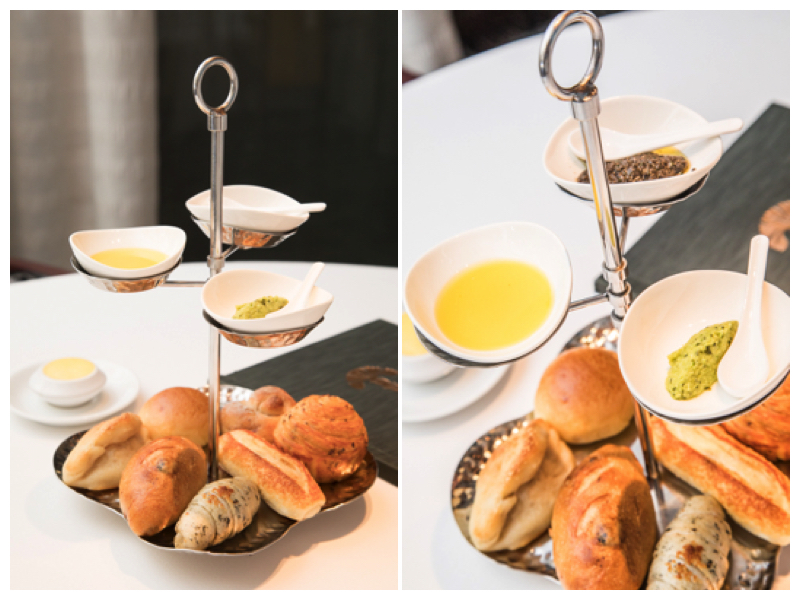 地中海牛排館的歐式麵包是由歐華飯店手作,佐以四款抹醬:奶油、青豆醬、進口LV級初榨橄欖油、辣味鯷魚醬,目前最新研發的起司軟法、九層塔捲、亞麻子丹麥口味鮮明獨特,咬咬超愛九層塔捲,鹹香清雅的九層塔香氣令人著迷