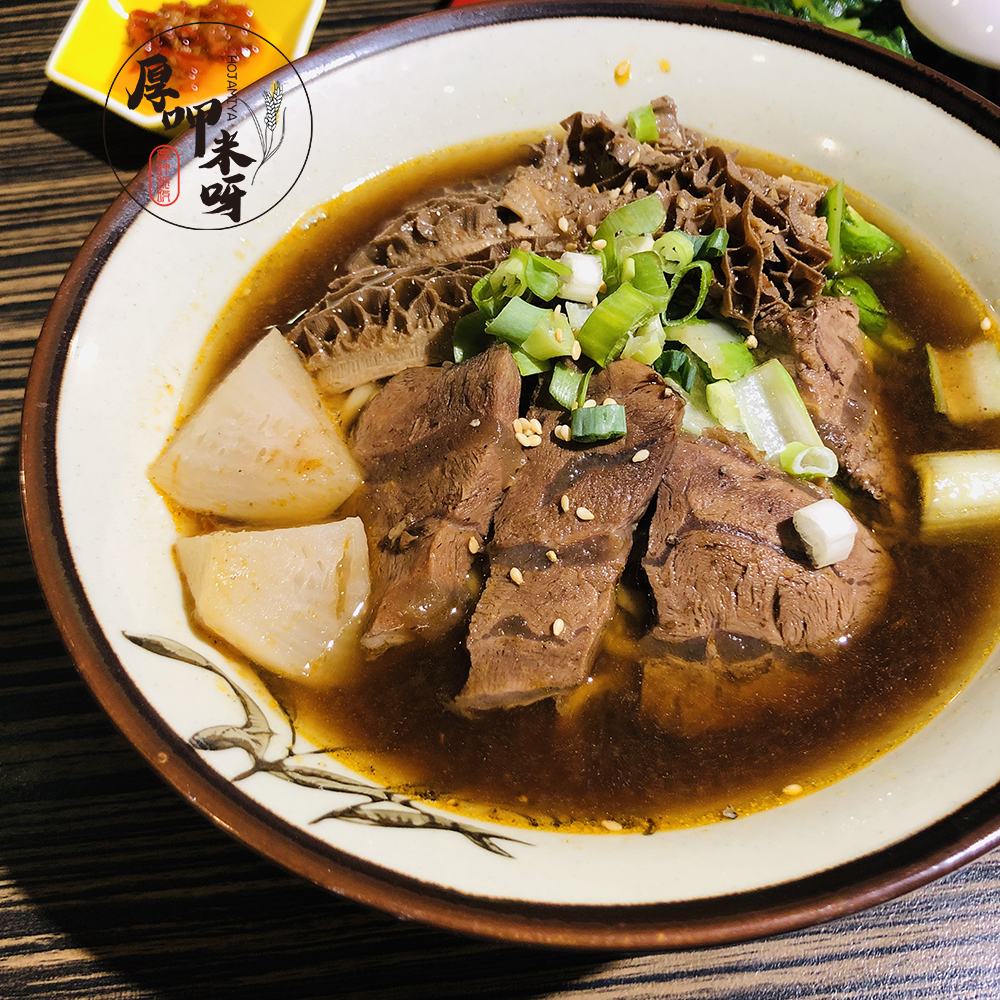 | 湯頭清甜帶蒜味,很容易一口接一口,牛肉牛肚麵 NTD 150元 |