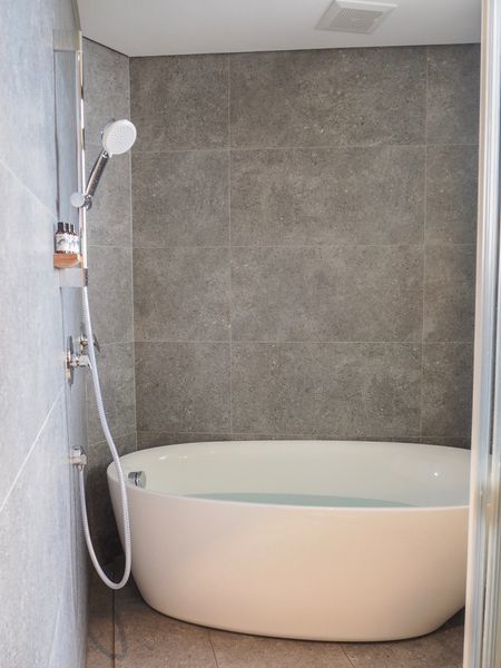 在外吃了一整天美食,加上這次在台南的第一天都在下雨,回到住處泡個澡消除疲勞,大浴缸泡湯好舒服呀😌