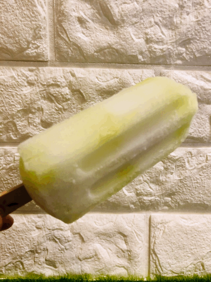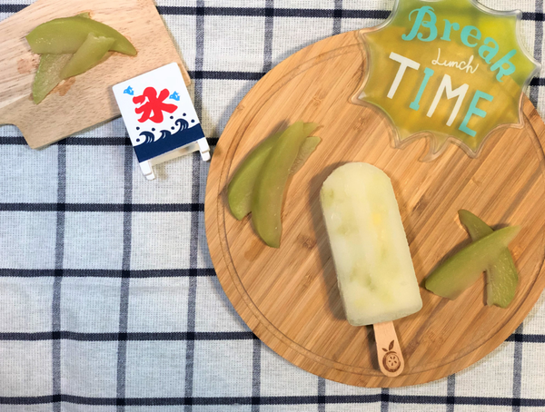 使用檸檬冰與二崙香瓜製作而成的混搭水果冰棒
