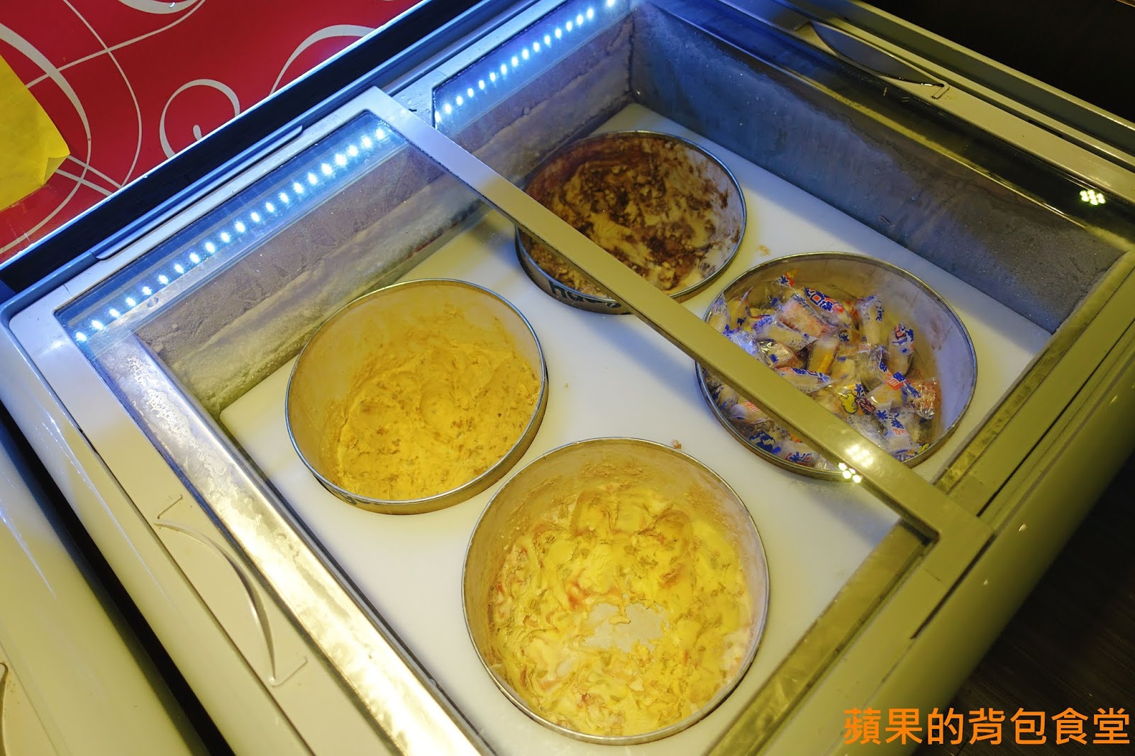 除了有冰淇淋 還有一桶裝著小包裝的冰品