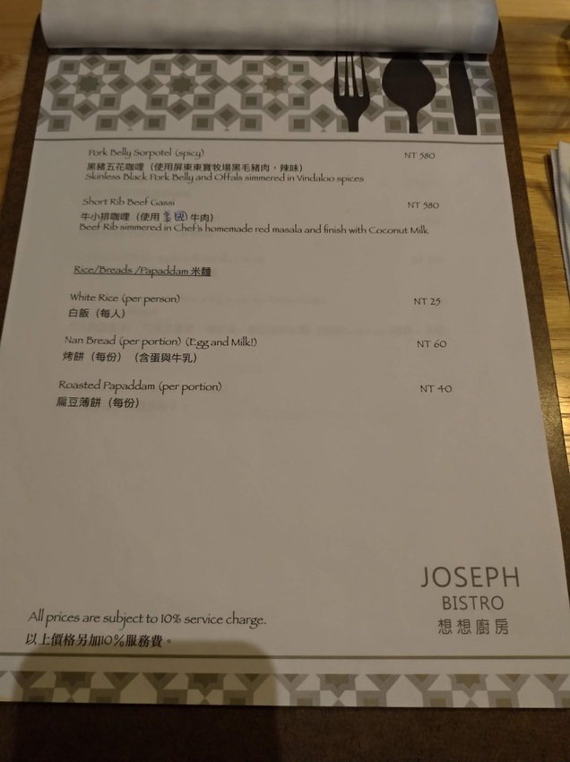 因工作之故與外國駐台使館接觸,無意間蒐集到各國使館心目中台北最好的當地餐館,故自從去(2018)年年中開始撰寫相關遊記(連結選我)。身為敝公司印度區的承辦人之一,自然也踏遍了不少台北的印度餐廳。本篇是由一位在知名外商工作的亞太區印度籍高管大力推薦,甚至輪調回新加坡之後,還特地帶家人來品嚐的印度美食:Joseph Bistro- 想想廚房。