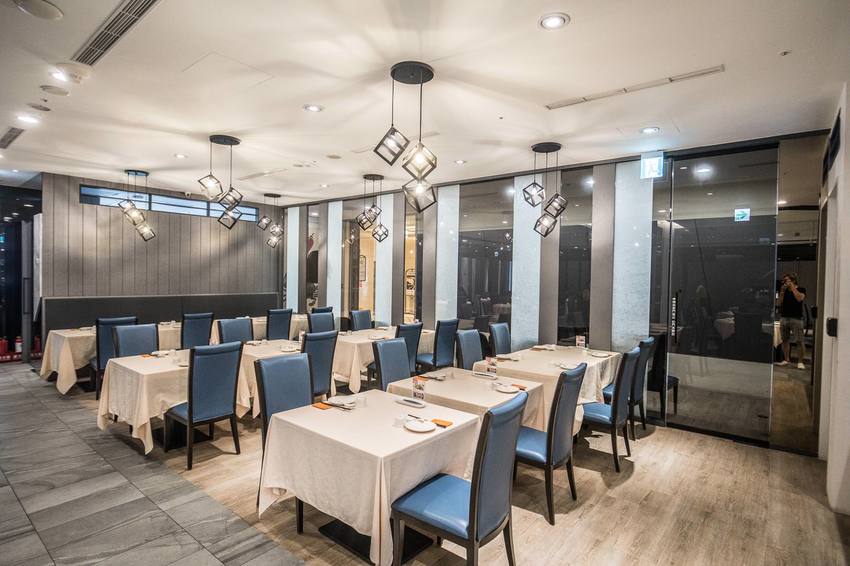 珍寶海鮮雖然位在百貨商場內,但用餐環境仍是相當寬敞舒適,開放式座位區有多人的圓桌及兩人的方桌可以選擇,白色簡約優雅的裝潢給人一種悠閒的用餐感覺,藍色的椅子顏色真的很跳,讓空間多了幾分時尚氣息