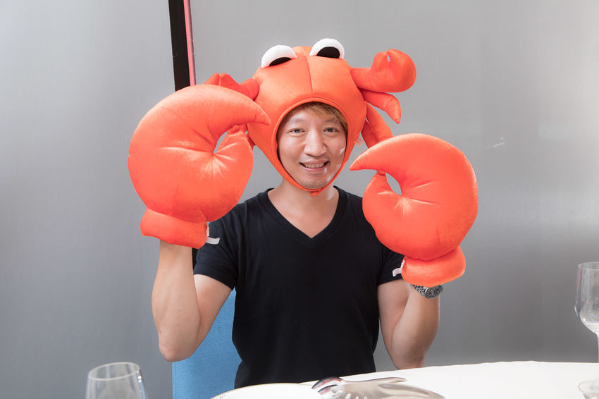 如果你是壽星就有福了,壽星來到店內用餐,珍寶海鮮會為壽星準備從新加坡空運來台的螃蟹頭套和蟹鉗,剛好咬咬是這個月生日,戴頭套讓大家拍照的重責大任自然落在我身上…,咬咬幫大家問過了,這頭套只要戴過就會送洗,衛生無虞