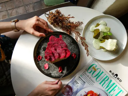 覺得店家很有巧思的將微酸的水果灑上糖粉,整盤鮮豔的色調搭配,讓人一眼就被吸引,甜點控為之瘋狂。