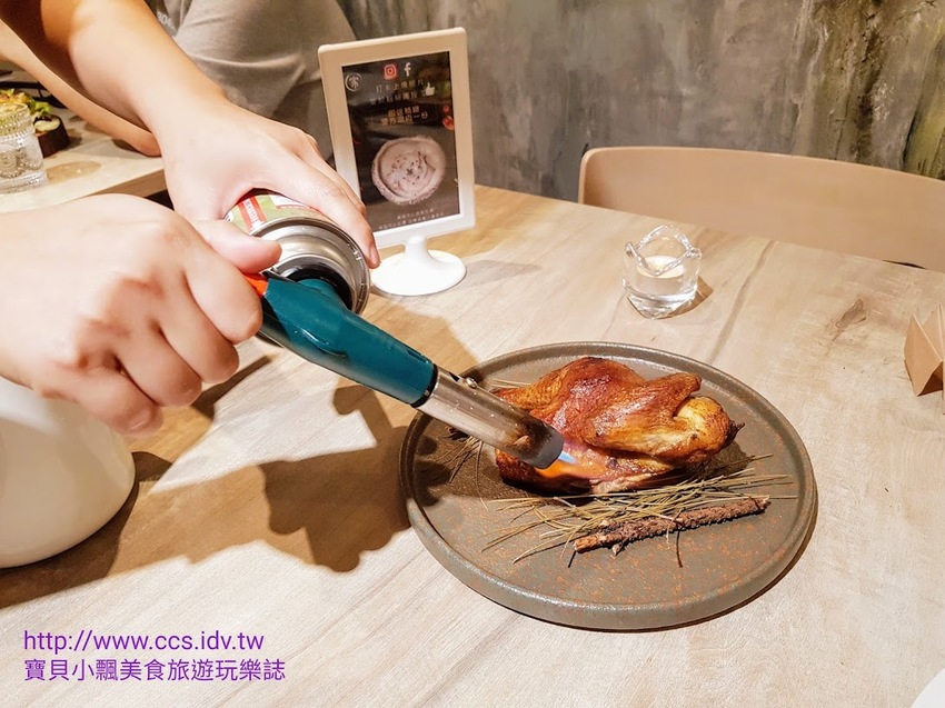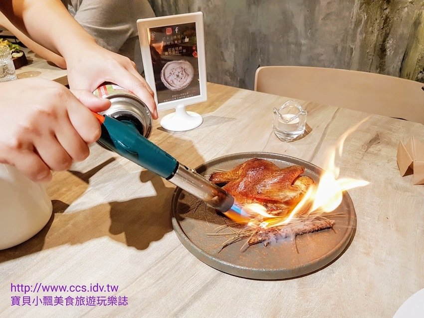 上餐時會將半雞放在桌上,利用點火槍點燃香料
