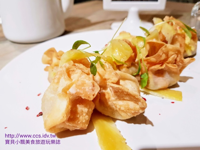 將鮮蝦包覆在餛飩中~油炸金黃酥脆