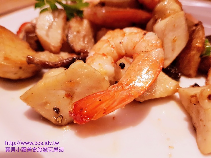 搭配綜合菇類及鮮蝦