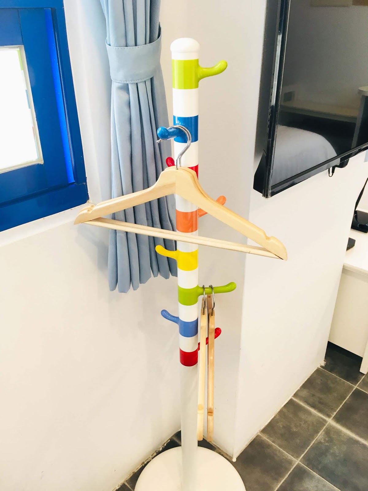 我們在洗衣房洗好的衣服,放在電視旁的衣架上,隔天就晾乾了!有四個衣架很夠我們使用,如果還需要更多衣架的話也可以跟服務人員索取喔。