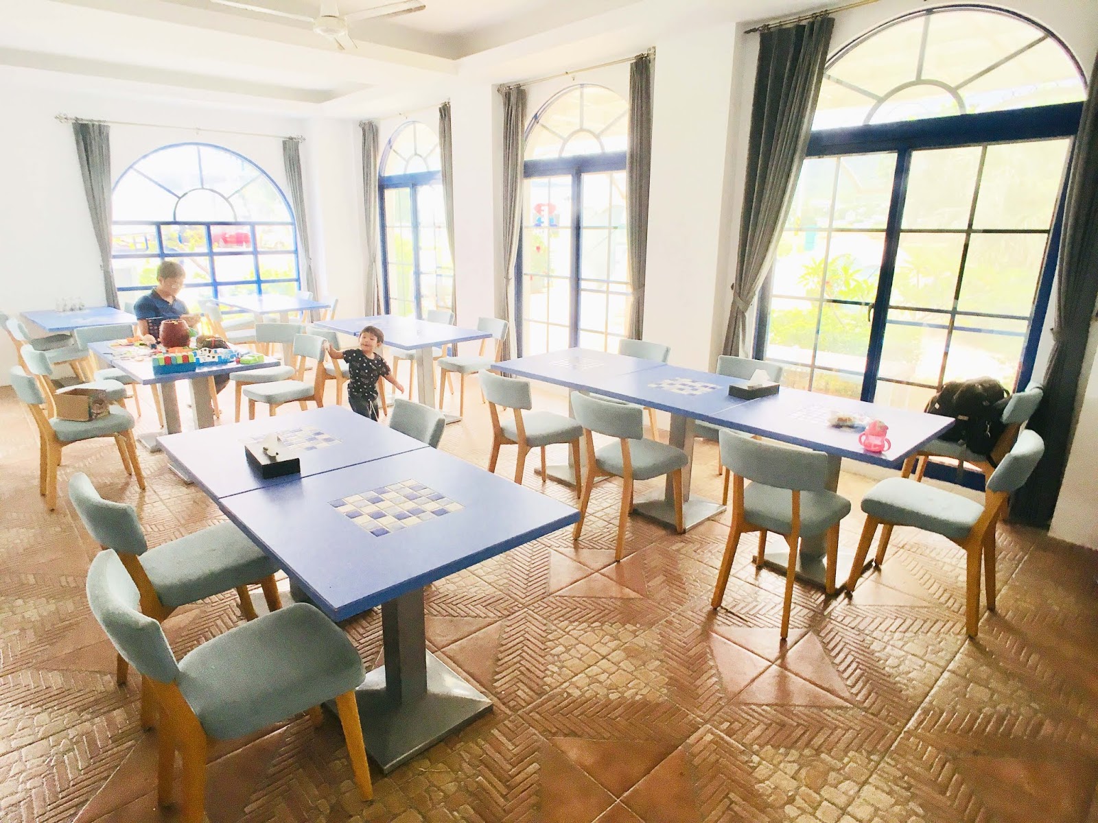 寬敞明亮的「交誼廳」桌上有眾多桌遊和玩具可以打發時間,小福寶一來就直接衝到滿是桌遊的桌前,孩子們也紛紛跟上,儼然是兒童遊戲區。