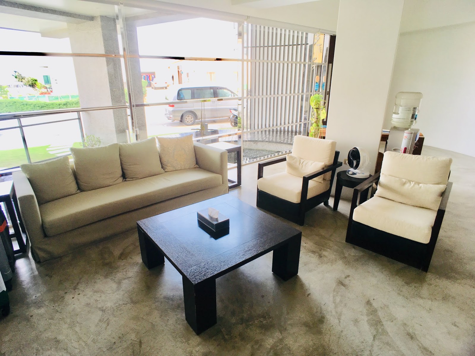 騎車來到民宿時,時間已經是傍晚了,整棟建築在夕陽的映照下帶點微微金黃,給奔波一天的我們如同回到家的溫暖。有設計感的建築體,比起民宿,更像是精緻旅店或飯店,讓我們好期待趕快入住。
