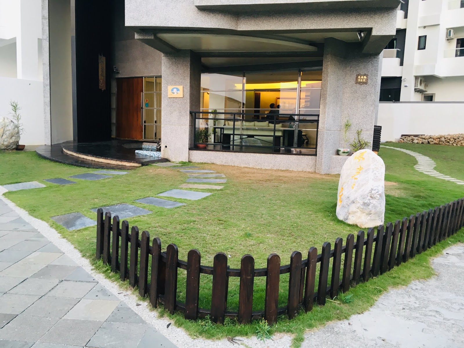 前後院都有柔軟的草皮,踩在上面的觸感很舒服,維護得很好。