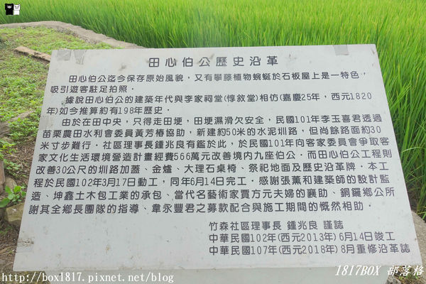 這邊有立解說牌,據推算,田心伯公已有近200年的歷史了。