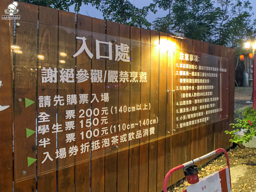收取門票:全票 200元、學生票 150元、半票100元 (110公分以下孩童不收費,門票可折抵泡茶、門票兌換飲品)