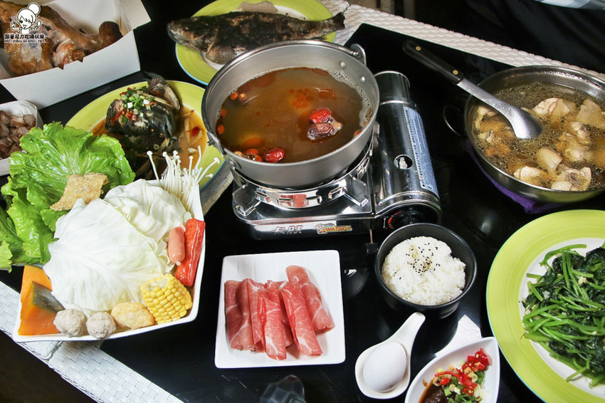 一個人也可以獨享個人火鍋,有肉盤、菜盤、醬料、白飯、雞蛋