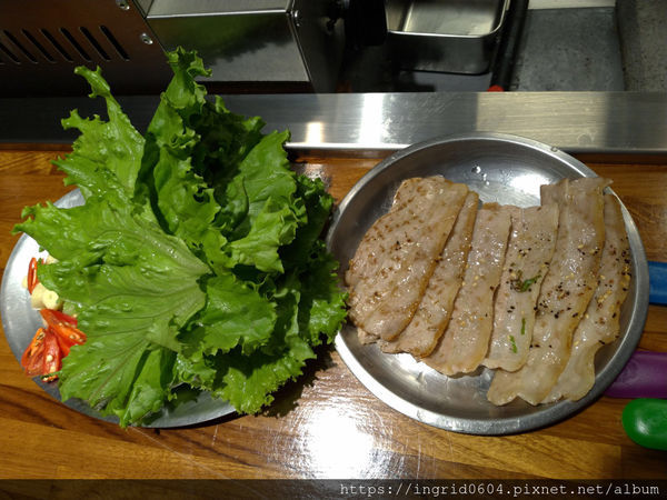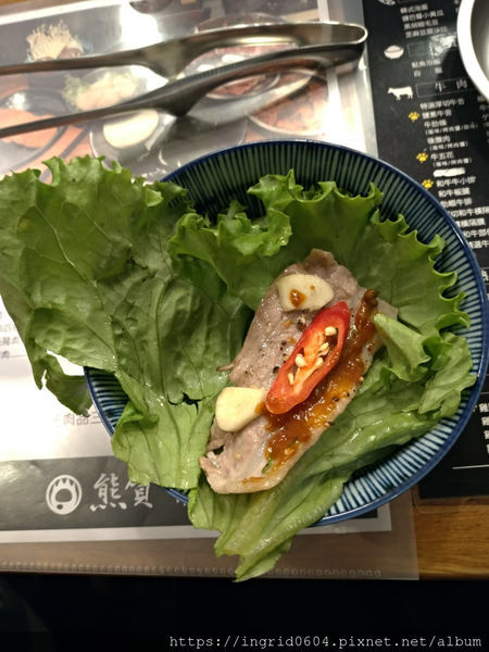 外面生菜的清脆可口 搭配熱呼呼的豬五花 咬起來口感分明