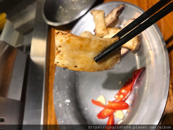 杏鮑菇烤起來相當好吃 薄厚度切得恰到好處 烤出來不會太乾