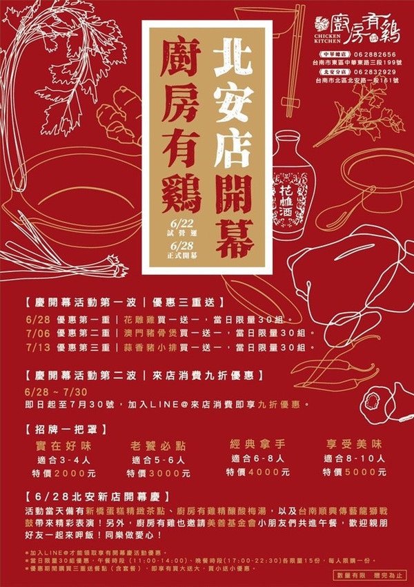 廚房有雞的開幕活動提供給大家參考,快把握這次活動衝一波吧!