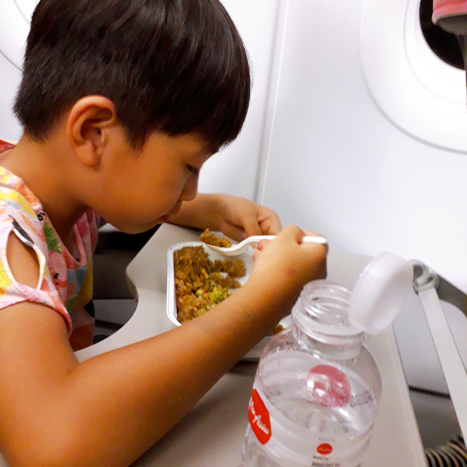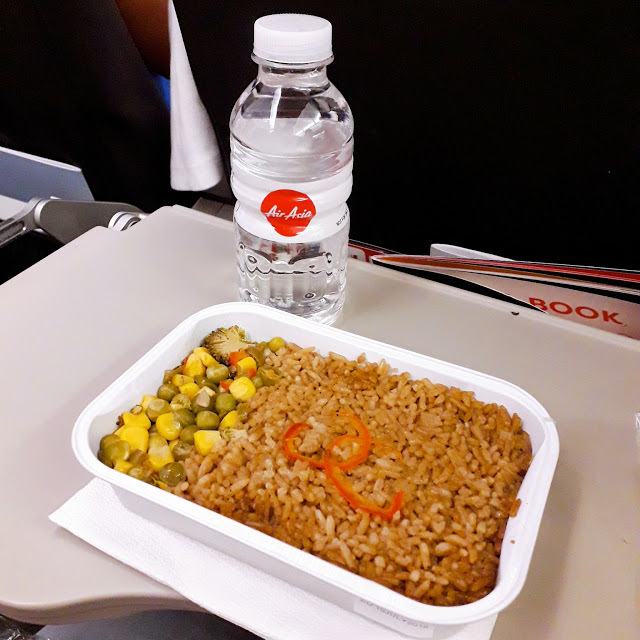 屎蛋媽預訂亞航餐點+20公斤手提行李套裝,一人只要加價850元,送來的素食餐很合屎蛋的味口,雖然屎蛋媽覺得飯有點硬,哈!(亞航餐點可以自由選擇喔!屎蛋媽手殘,素食餐為第一個選項,屎蛋媽一鍵按下,就.....與肉無緣啦!)隔壁飄來陣陣的飯菜香,淚!如果忘了在購買機票時訂餐,也可以在機上現場購買,免煩惱啦!