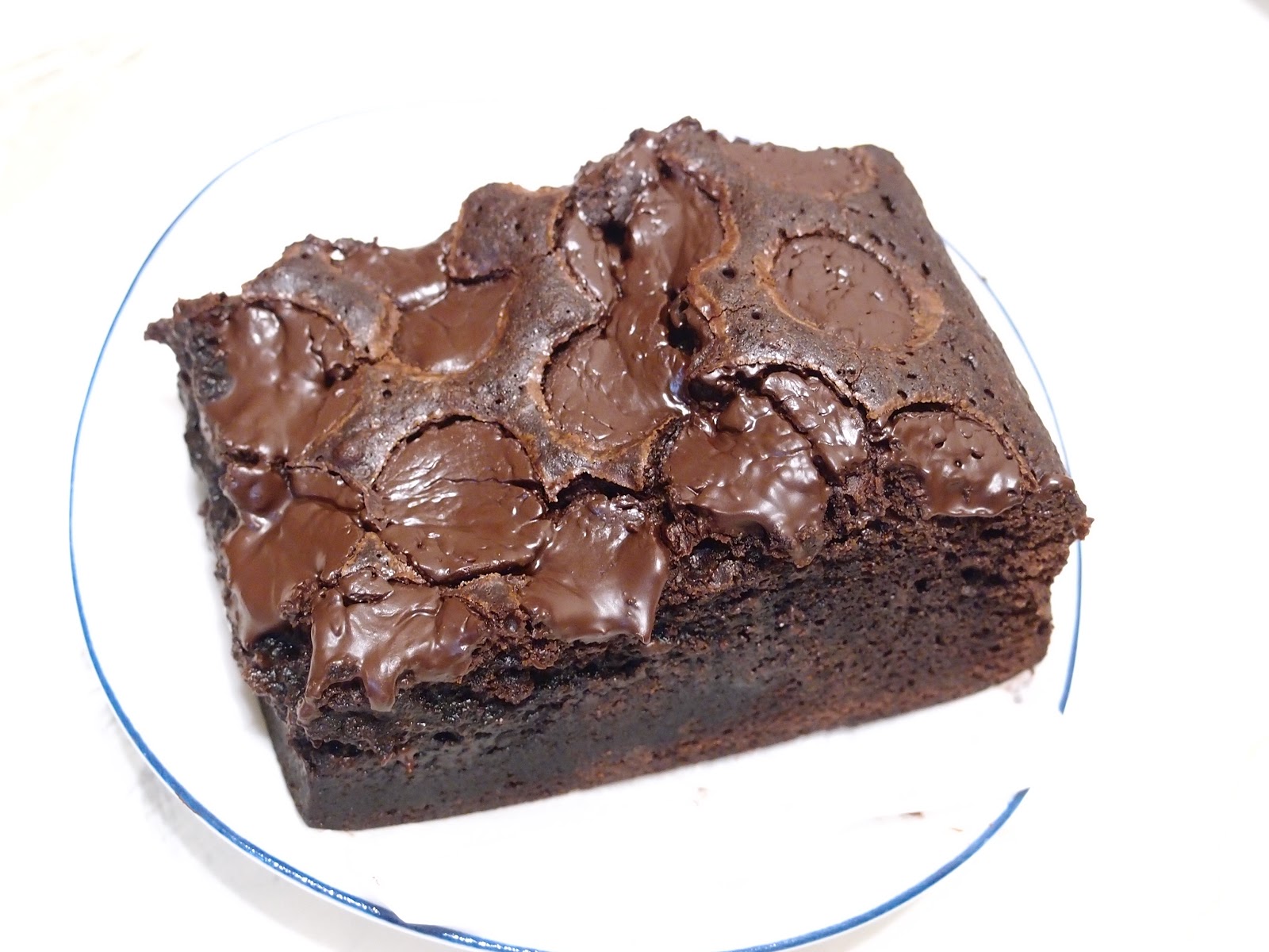 我很喜歡這款作品有做到溼潤黏密的蛋糕體,讓巧克力的濃郁可以輕易地一口口吞入,部份微酥的外殼和巧克力豆也增添不同口感,布朗尼控絕不能錯過。