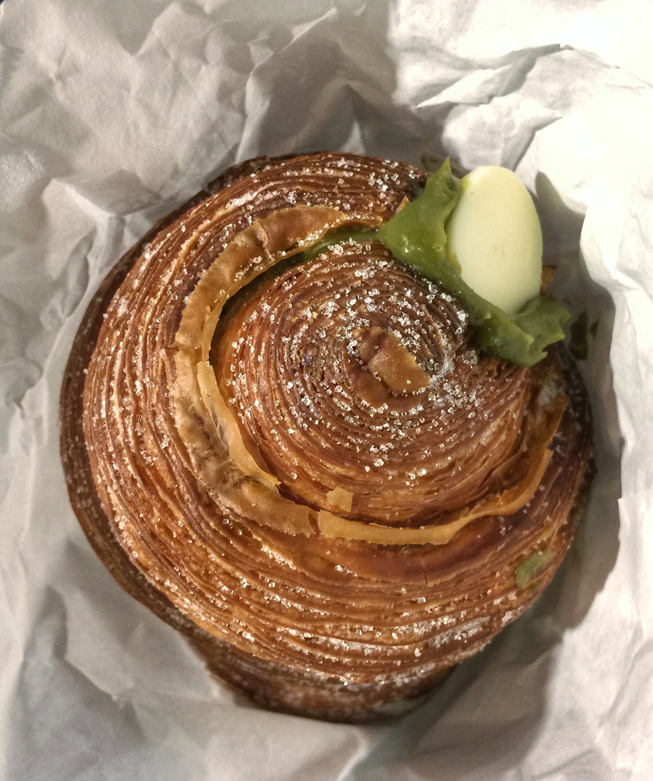覺得唯一有呼應到夏天的只有一貫輕盈滑動的內餡質地,然後在頭頂溢出的綠色奶油旁邊插著白巧克力片,個人覺得意味不明,是概念的展現?