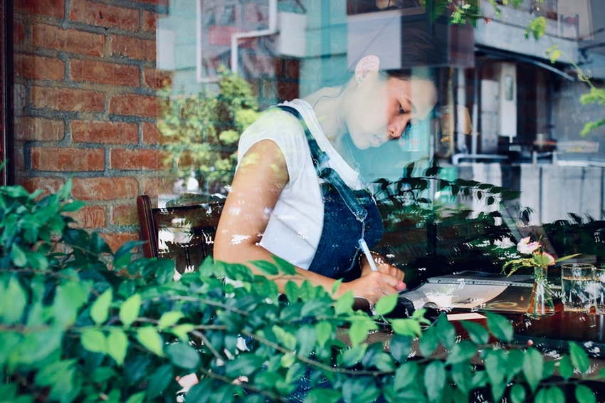 店內除了提供餐點、茶品,也有販售著獨一無二的工藝品。Ann很喜歡桌上那從天花板垂掛而下的金屬燈罩,以及每張桌上擺放的小盆栽。