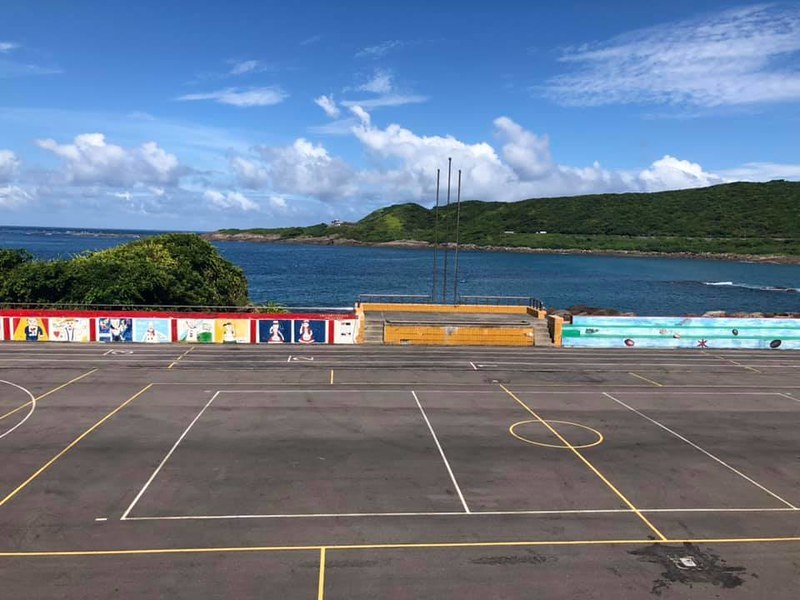福連國小的操場旁就是一片湛藍大海,好棒啊!