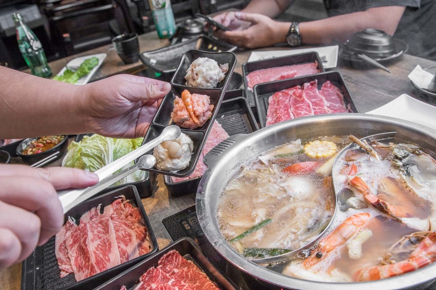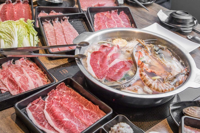 祥富水產使用的鍋具是兩格的,所以我們一格專門煮肉,一邊專門煮海鮮,湯才不會因為大鍋煮一起煮混濁