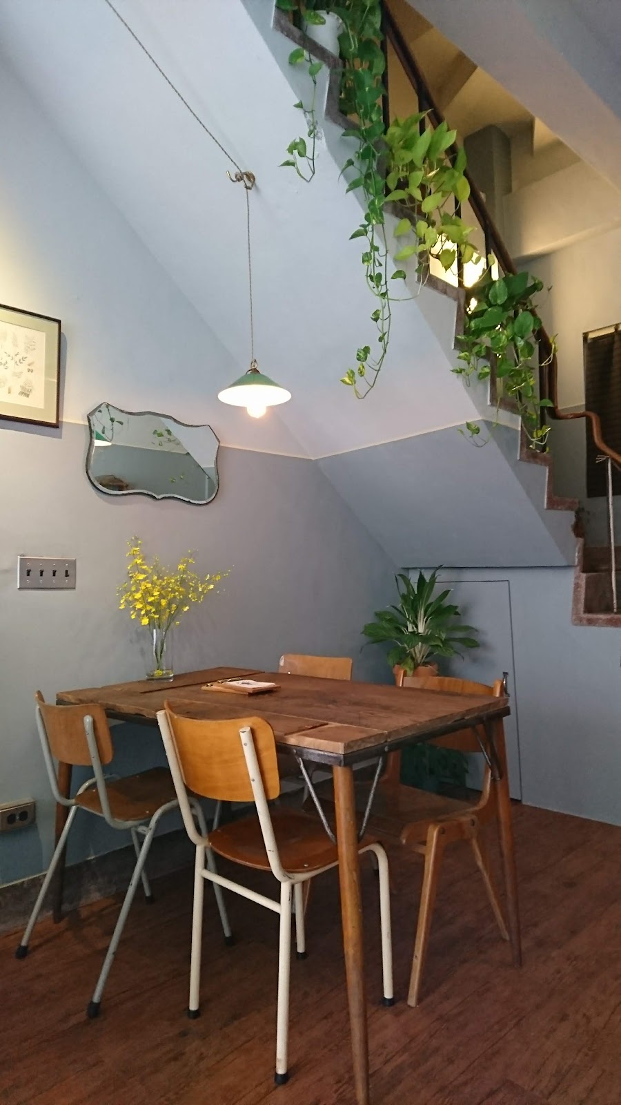 木頭桌椅搭配綠色植栽就是說不出的好看,