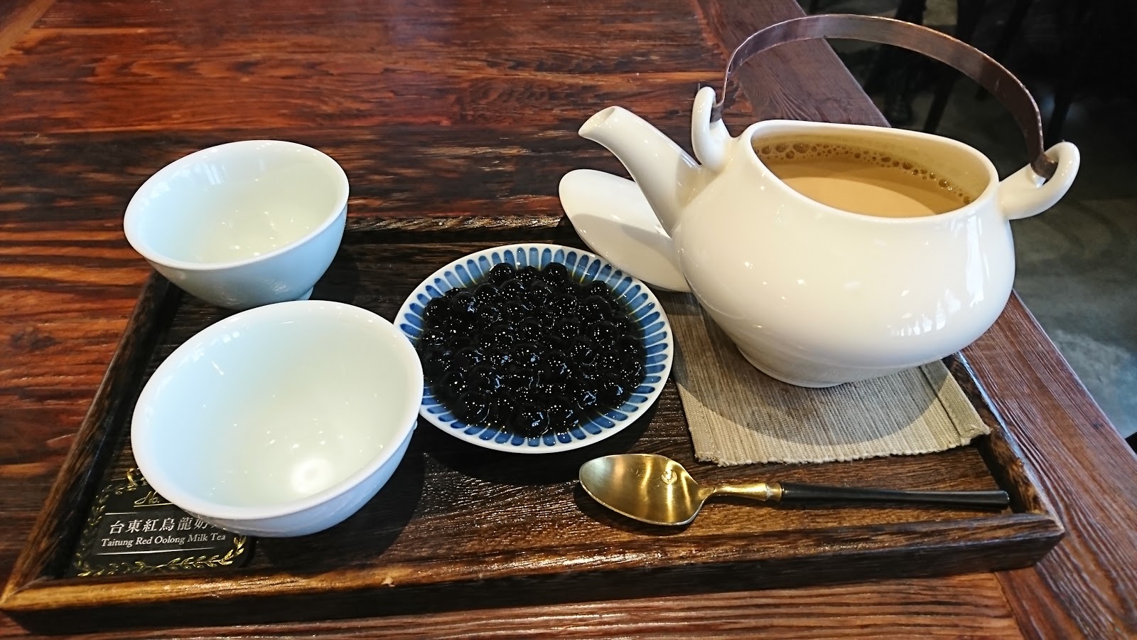 中間是老八點的台東紅烏龍奶茶加珍珠,