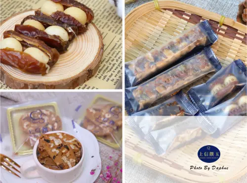 使用美國加州Chandler的核桃再加入棗泥中,棗泥是由黑棗與紅豆製成。