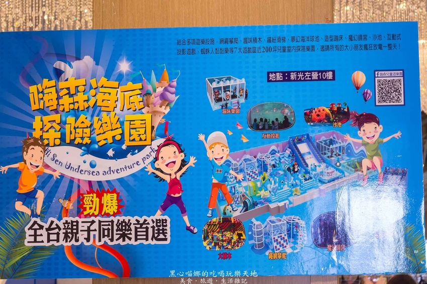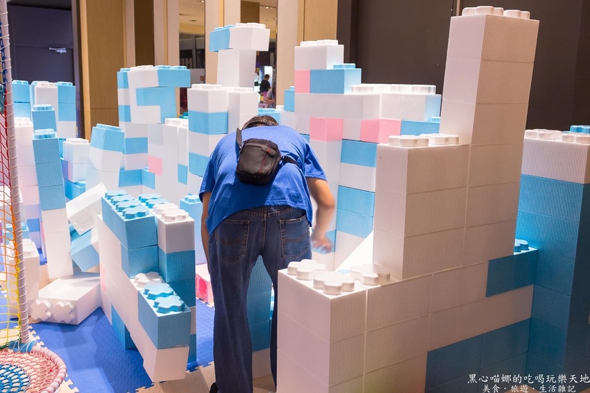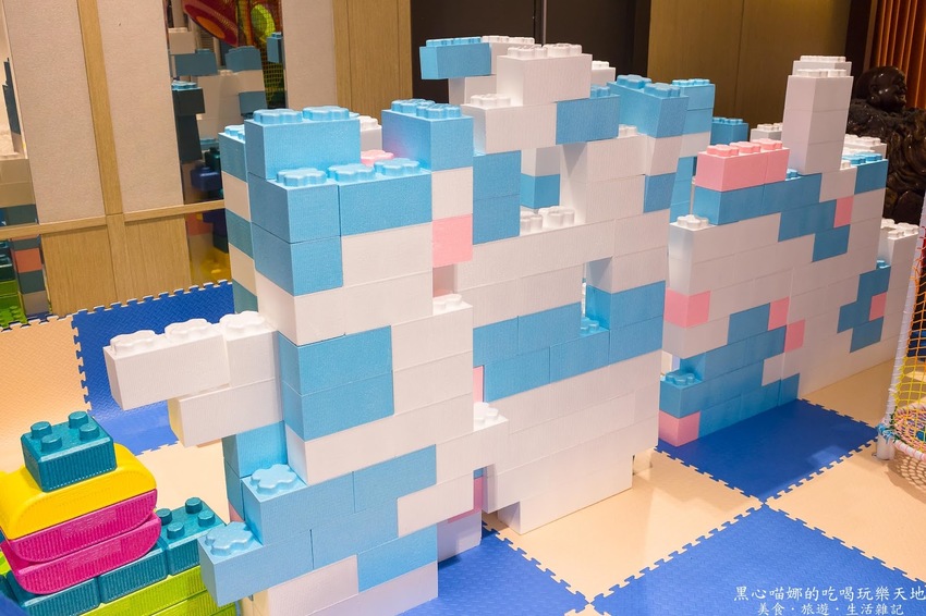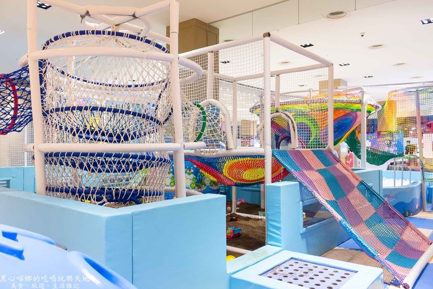 平日不限時間、怎麼玩都不會髒了衣服的超大決明子沙坑、泡泡浴般夢幻的海底球池滑梯、大人小孩都瘋狂的想要長好高跳跳床、走著走著就漸漸被迷惑心智的魔幻鏡子迷宮、手眼協調激發無限想像力的堆堆堆積木城堡、還有可以來回穿梭探險玩捉迷藏的彩色網繩攀爬…等主題遊戲區,就算約法三萬章,還是會玩到很瘋、很嗨、很不想回家啊!!