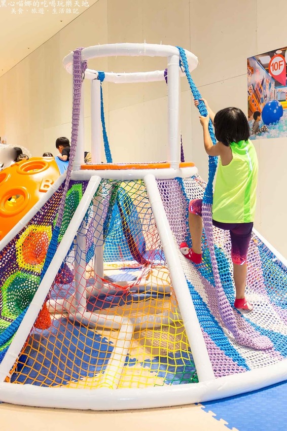 從球池開始延伸到跳跳床前的編織彩網攀爬道,很容易勾起小朋友們的冒險魂耶!而且色彩斑斕,目光吸引程度可不亞於大球池呢!