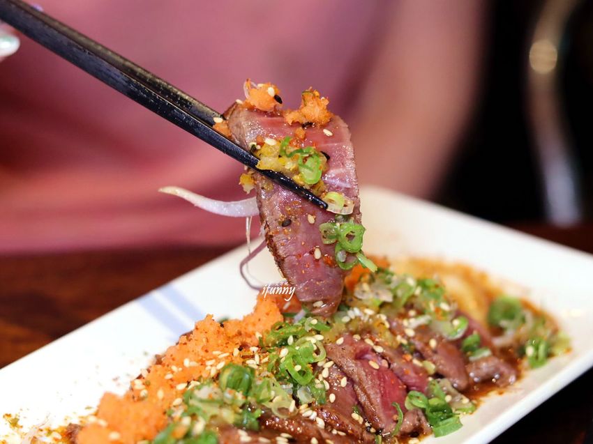 一般常見的手羽先通常是與明太子的組合,而這與芋泥的組合,芋頭控怎麼可能錯過?手羽先烤得油香四溢,肉汁滲透到裡頭的芋泥之中,鹹香甜交織的美味,令人一吃就愛上。