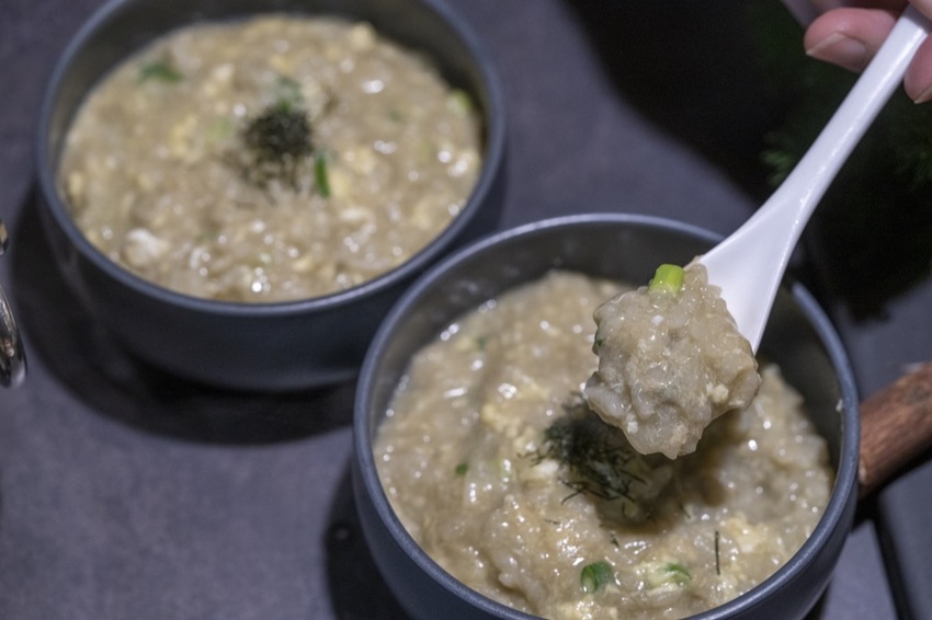 吃到結尾,湯頭已經集結了滿滿的精華,再加入蝦醬熬煮成雜炊粥,鹹香甘甜,熱呼呼的吃下肚療癒又滿足!