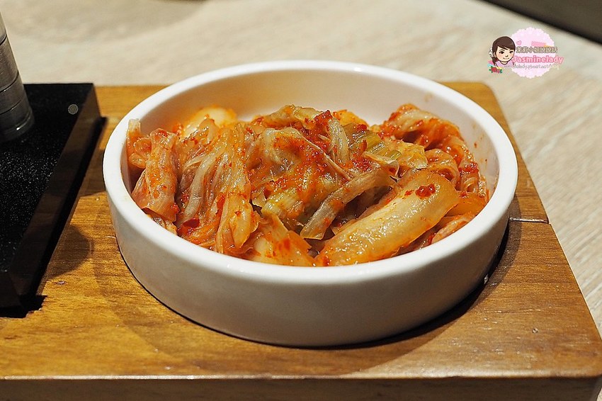 手工漬物小菜:泡菜,泡菜也可以搭配烤肉一起吃,但其實這裡的牛肉都很新鮮很優,沾一點點鹽來吃就很棒了。