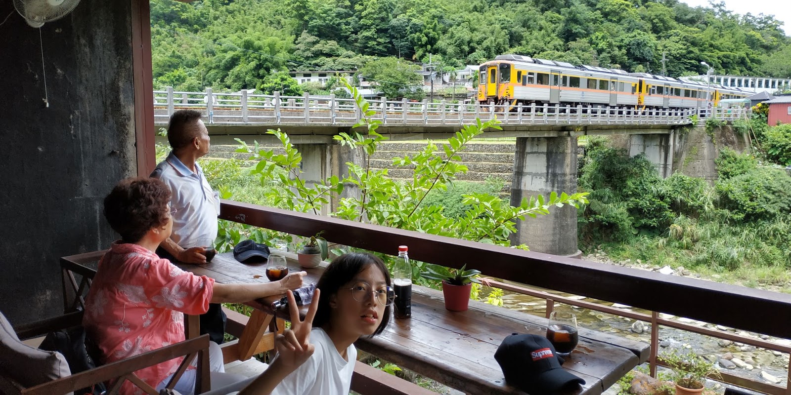 吃飽後到處逛逛走進一間咖啡廳"三貂嶺河之谷",點了一杯100元說貴不貴的冰咖啡、選了一個視野極佳的位置,看著平溪線的火車一台一台慢慢地經過,跟著親人度過幸福的午後時光,無價。