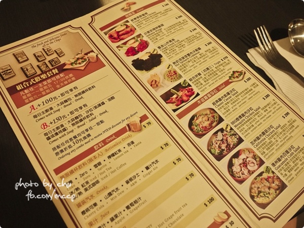 加100元有主廚湯、大蒜麵包、飲料(可續杯)