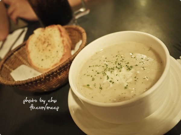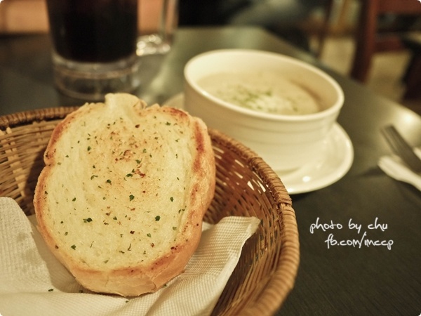 麵包烤的也蠻酥脆,上面的香蒜可以再灑多一點比較有味道,沾濃湯吃又是一個絕對不失敗的絕佳美味!!